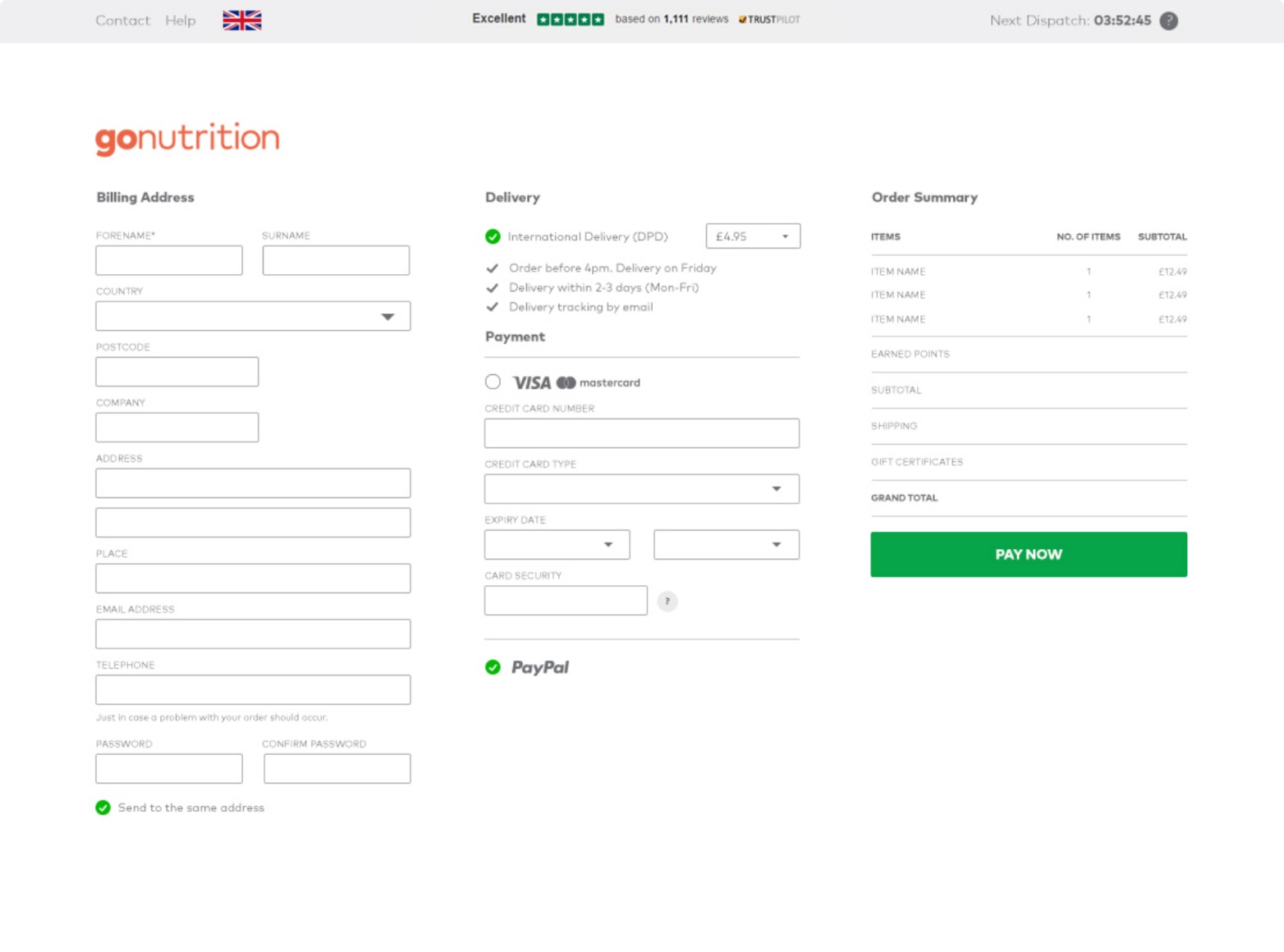 We had one primary message: you can trust Gonutrition. We needed to refine the user flow from basket to purchase confirmation. If users found that they could trust the flow and complete it with ease, they would have a good reason to come back and purchase again.